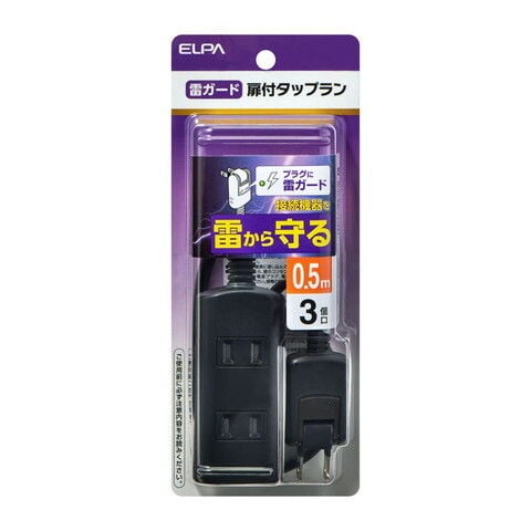 ELPA 扉付 耐雷タップ(3個口・0.5m) ブラック ELPA WBT-N3005SB(BK) 【返品種別A】