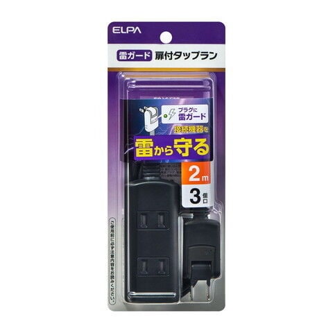 ELPA 扉付 耐雷タップ(3個口・2m) ブラック ELPA WBT-N3020SB(BK) 【返品種別A】