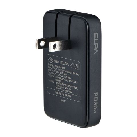 ELPA フラットUSBアダプター PD30W(ブラック) UC-23B(BK) 【返品種別A】
