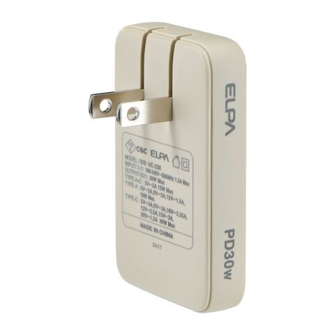 ELPA フラットUSBアダプター PD30W(ベージュ) UC-23B(BE) 【返品種別A】
