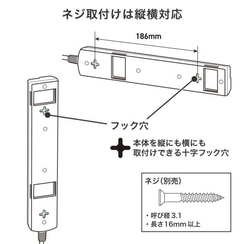 ELPA ランプレス個別スイッチ付電源タップ(6個口・2m) ホワイト ELPA WLK-E62(W) 【返品種別A】