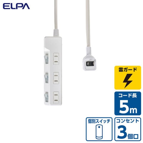 ELPA 個別スイッチ付き 耐雷タップ(3個口・5m) ELPA WLK-R35SW 【返品種別A】