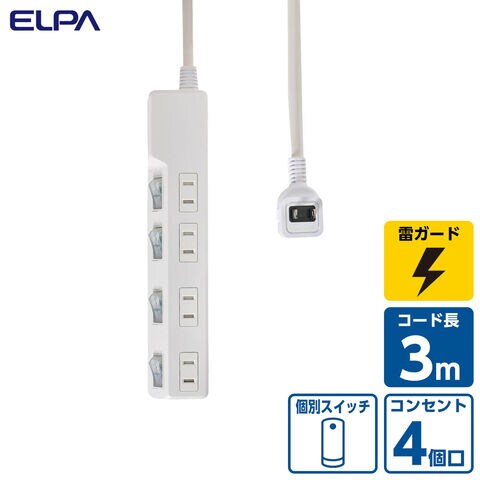 ELPA 個別スイッチ付き 耐雷タップ(4個口・3m) ELPA WLK-R43SW 【返品種別A】