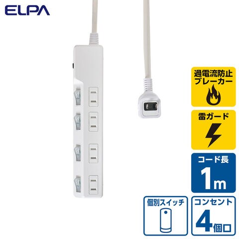 ELPA ブレーカー機能・個別スイッチ付き 耐雷タップ(4個口・1m) ELPA WLK-R41BW 【返品種別A】