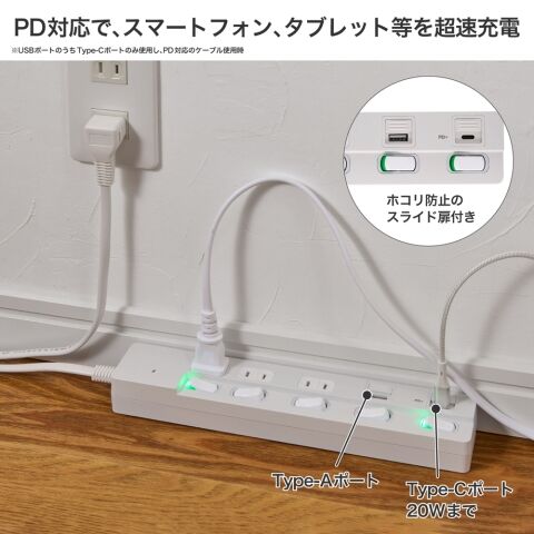 ELPA 個別スイッチ付USBタップ(3個口/1m/USB A×1、C×1) ホワイト ELPA WLK-3221SUC(W) 【返品種別A】