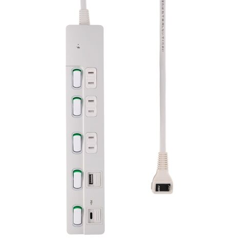 ELPA 個別スイッチ付USBタップ(3個口/2m/USB A×1、C×1) ホワイト ELPA WLK-3222SUC(W) 【返品種別A】