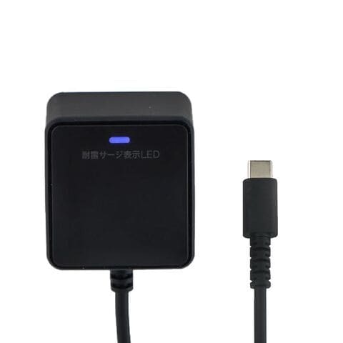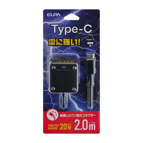 ELPA 雷サージ付き 耐雷USB充電器PD2m USB-Cケーブル一体型 PD 20W 折りたたみプラグ(ブラック) CHCR-SP20BK 【返品種別A】