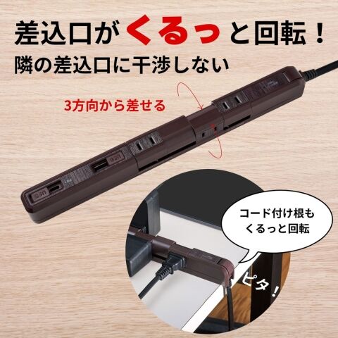 ELPA 耐雷スリム回転USBタップ(4個口/2m/USBポート A×1、C×1) 木目 ELPA WB-RSL4222SUCWD 【返品種別A】