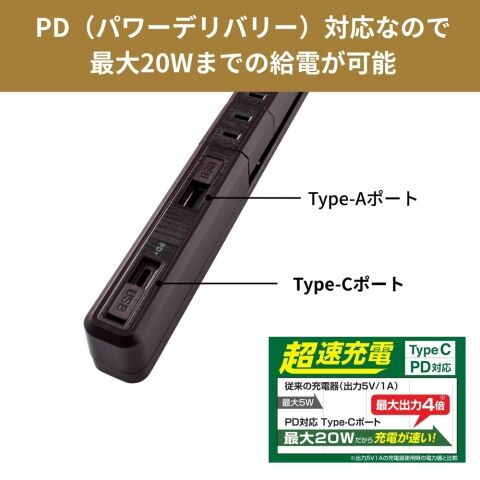 ◆PD(パワーデリバリー)対応で、スマートフォン、タブレット等を超速充電できます。最大20Wまでの給電が可能。