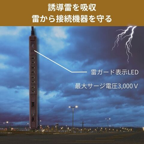 ELPA 耐雷スリム回転USBタップ(4個口/2m/USBポート A×1、C×1) 木目 ELPA WB-RSL4222SUCWD 【返品種別A】のレビュー