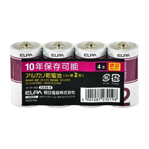 ELPA アルカリ乾電池単2形 4本パック ELPA Alkaline 防災セレクト LR14-AD4SBS 【返品種別A】