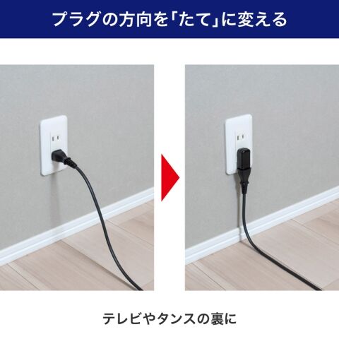 ◆プラグの向きを縦方向に変えることで、コードを真下に配線できます