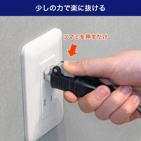 ◆アダプターの外しツマミを指先で押すだけでプラグが簡単に抜けます。