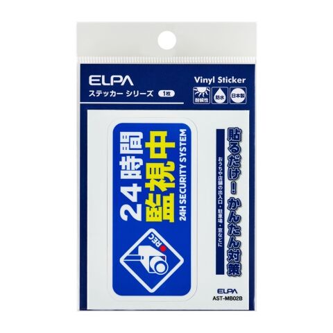 ELPA ステッカーM 「24時間監視中」(ブルー) 1枚入 ELPA AST-MB02B 【返品種別A】