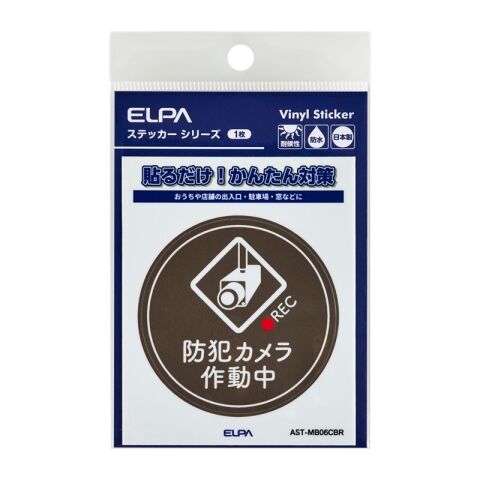 ELPA ステッカーM 「カメラ作動中」 丸(ブラウン) 1枚入り ELPA AST-MB06CBR 【返品種別A】