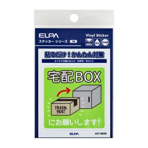ELPA ステッカーM 「置き配宅配BOX」 1枚入り ELPA AST-MD05 【返品種別A】