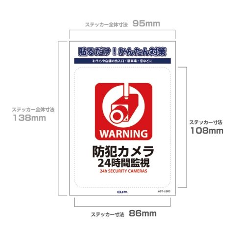 ELPA ステッカーL 「24時間監視」 1枚入り ELPA AST-LB03 【返品種別A】