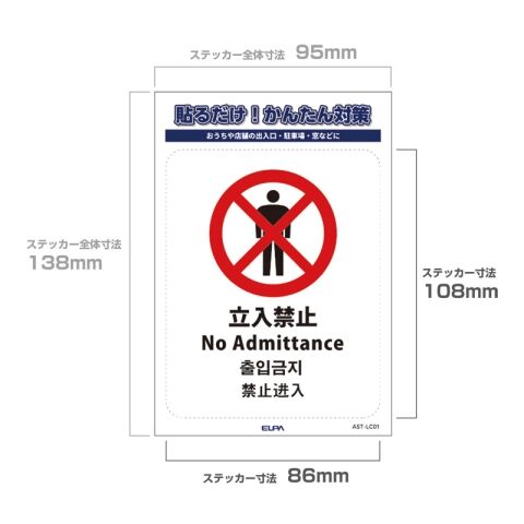 ELPA ステッカーL 「立入禁止」 1枚入り ELPA AST-LC01 【返品種別A】