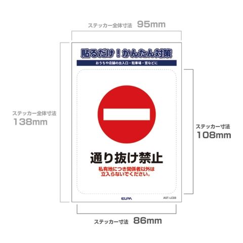 ELPA ステッカーL 「通り抜け禁止」 1枚入り ELPA AST-LC03 【返品種別A】