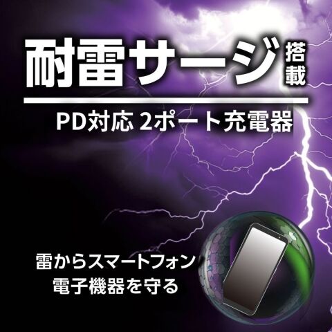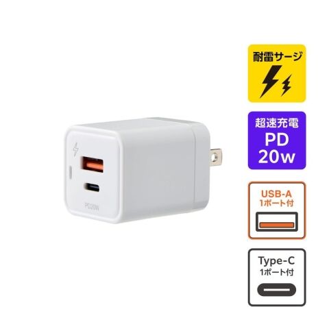 ELPA 耐雷USB充電器A&C付PD20(ホワイト) CHR-SP20ACWH 【返品種別A】