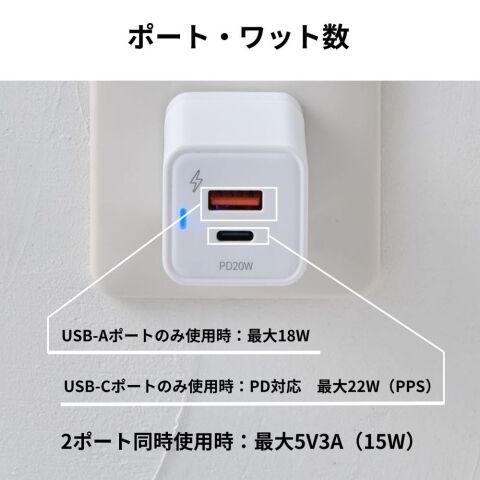 - 出力:Type-C:5V/3A・9V/2.22A・12V/1.67A(20W MAX)PPS:5-11V/2A USB-A:5V/3A・9V/2A・12V/1.5A(18W MAX)Type-C+USB-A:5V/3A(15W MAX)