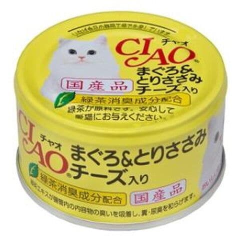 まぐろ、鶏肉(ささみ)、チーズ、まぐろエキス、増粘多糖類、ビタミンE、緑茶エキス