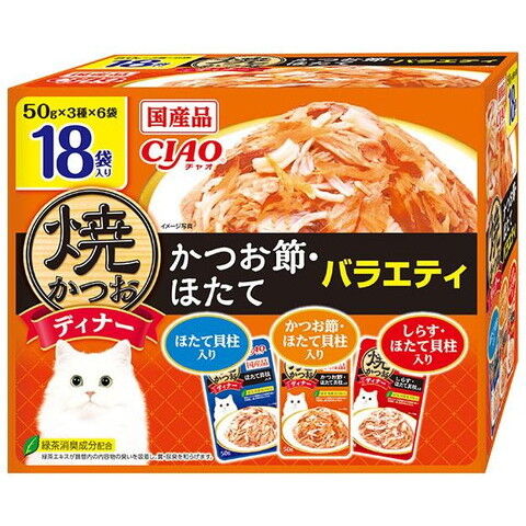 いなばペットフード CIAO 焼かつおディナー かつお節・ほたてバラエティ 50g×18袋 ヤキKDカツフシホタテV50G18P 【返品種別B】