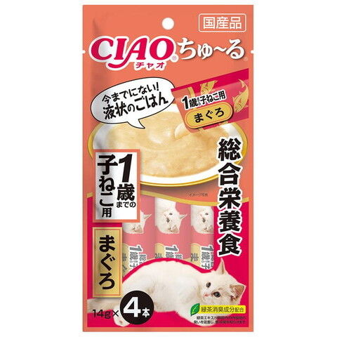 いなばペットフード CIAO ちゅ~る 総合栄養食 1歳までの子ねこ用 まぐろ 14g×4本 チユ-ルソウコウ1サイマクロ4P 【返品種別B】