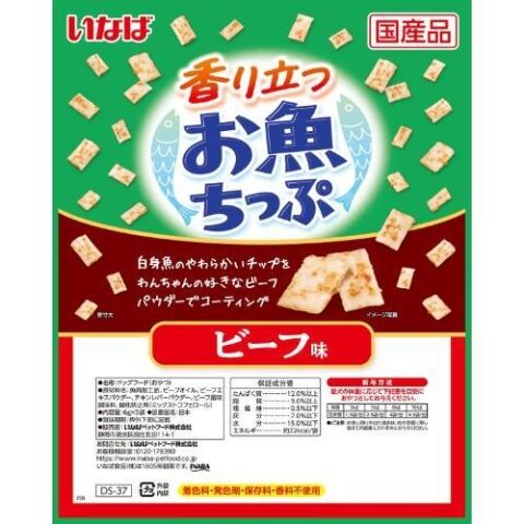 魚肉加工品、ビーフオイル、ビーフエキスパウダー、チキンレバーパウダー、ビーフ風味調味料、酸化防止剤(ミックストコフェロール)