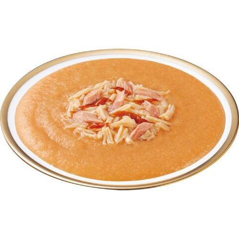 鶏肉(ささみ)、かつお、かつお節エキス、かつお節、チキンエキス(イミダゾールジペプチド含有)、糖類(オリゴ糖等)、N-アセチルグルコサミン、DHA・EPA含有精製魚油、殺菌乳酸菌、植物性油脂、増粘安定剤(加工でん粉、増粘多糖類)、ミネラル類(Na、P、Cl)、キトサン、調味料(アミノ酸)、ビタミンE、紅麹色素、緑茶エキス、ヘマトコッカス藻色素(アスタキサンチン含有)