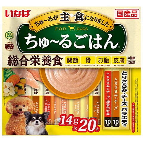 いなばペットフード いなば 犬用ちゅ~るごはん 総合栄養食 とりささみ・チーズバラエティ 14g×20本 チユ-ルゴハンササミチ-ズV20P 【返品種別B】
