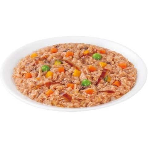 ■原材料:まぐろ、かつお、野菜類(人参、かぼちゃ、グリンピース)、かつお節、でん粉類、まぐろエキス、寒天、増粘多糖類、ビタミンE、紅麹色素、緑茶エキス