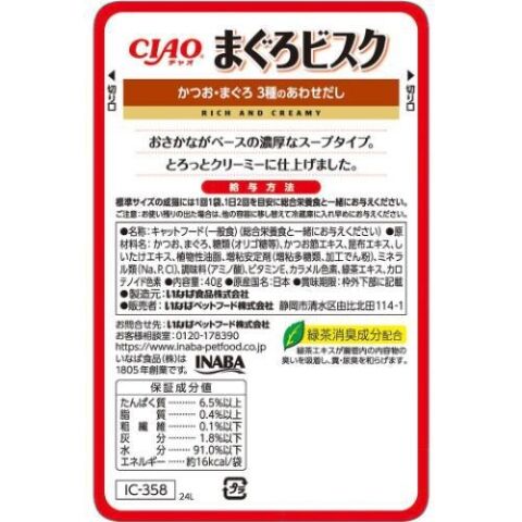 いなばペットフード パウチ まぐろビスク かつお・まぐろ 3種のあわせだし 40g IC-358カツマグアワセダシ40G 【返品種別B】