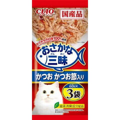 いなばペットフード CIAO おさかな三昧 かつお かつお節入り 60g×3袋 ザンマイカツオカツブシ60*3 【返品種別B】
