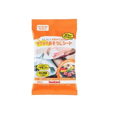 丸洗いできないカセットこんろ本体やホットプレート等についた油汚れを拭き取る洗剤成分を含ませたシートです。