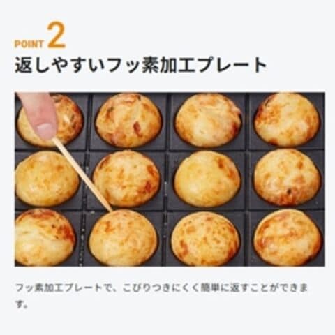 フッ素加工プレートで、こびりつきにくく簡単に返すことができます。