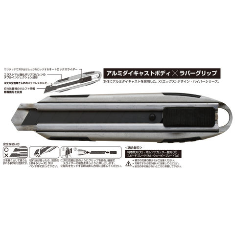 ◆X(エックス)デザイン・ハイパーシリーズのアルミダイキャスト大型カッターナイフ。