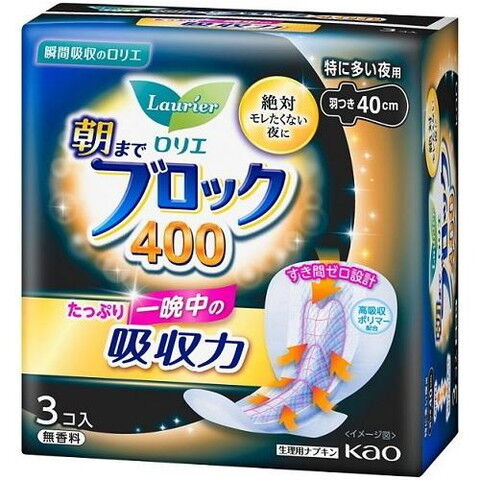 花王 ロリエ 超吸収ガード 朝までブロック 400 羽つき 3個入 ロリエCG400 3コ 4B 【返品種別A】