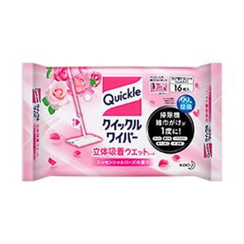 花王 クイックルワイパー 立体吸着ウエットシート エッセンシャルローズの香り 16枚入 クイツクルWPRWロ-ズ16N 【返品種別A】