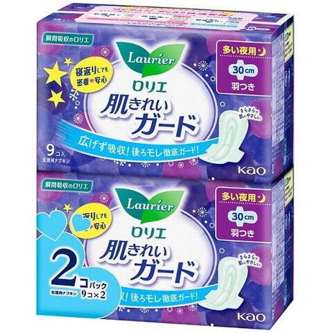 花王 ロリエ 肌きれいガード 夜用 羽つき 9コ入×2 ロリエHKヨルハネツキ9X2 【返品種別A】