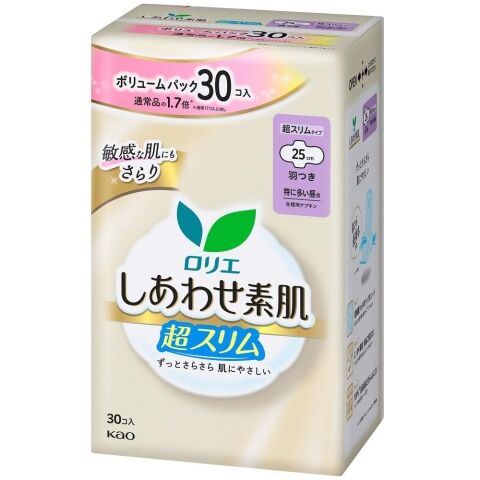花王 ロリエ しあわせ素肌 ボリュームパック 超スリム 特に多い昼用25cm 羽つき 30個入 Rシアワセスリムトクヒルハネツキ30コ 【返品種別A】