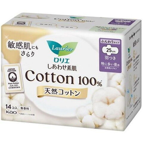 花王 ロリエ しあわせ素肌 天然コットン100% 特に多い昼用25cm 羽つき 14個入 ロリエボタニカル25トヒW14コムコウ 【返品種別A】