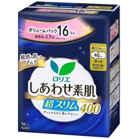 花王 ロリエ しあわせ素肌 ボリュームパック 超スリム 特に多い夜用40cm 羽つき 16個入 ロリエシアワセスリムトクヨルハネツキ16 【返品種別A】