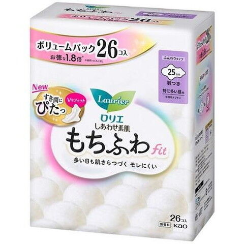 花王 ロリエ しあわせ素肌 もちふわfit ボリュームパック 特に多い昼用25cm 羽つき 26個入 ロリエシアモチフワトクオオイヒルハネ26 【返品種別A】