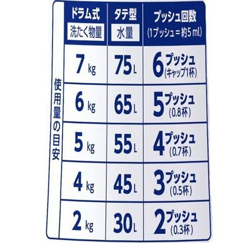■成分:界⾯活性剤[47%、⾼級アルコール系(⾮イオン)、⾼級アルコール系(陰イオン)、ヒドロキシアルカンスルホン酸塩]、安定化剤、抗菌剤、消臭助剤、酵素