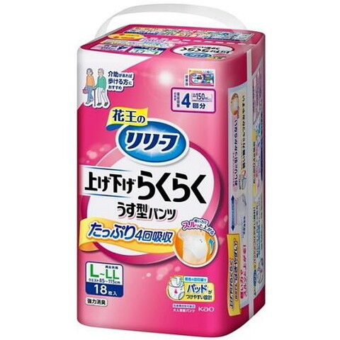 花王 リリーフ パンツタイプ 上げ下げらくらくうす型パンツ 4回分L-LL18枚入 リリPアゲサゲラク4カイL-LL18 【返品種別A】