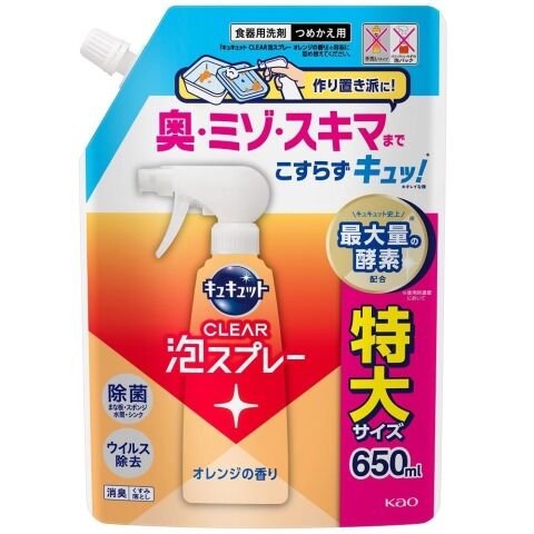 花王 キュキュット クリア泡スプレー オレンジの香り つめかえ用 650ml キユキユスプレオレカエ650 【返品種別A】