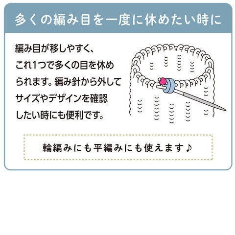 ◆輪編みにも平編みにも使え、一度に多くの編み目を休めたいときに適しています。