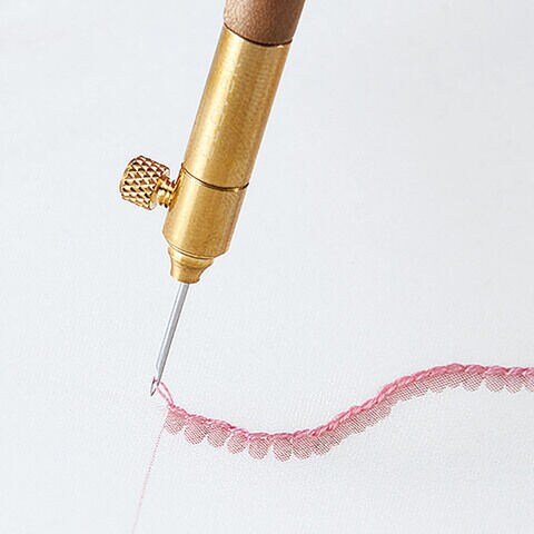 ◆糸をかけやすいかぎの形状と、なめらかで刺しやすい針先。