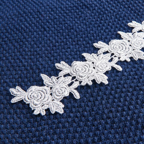 ◆ブローチピンの代わりに。大きなモチーフやレースも、ニットウェアやニット小物に編み地を挟んでしっかり留まります。
